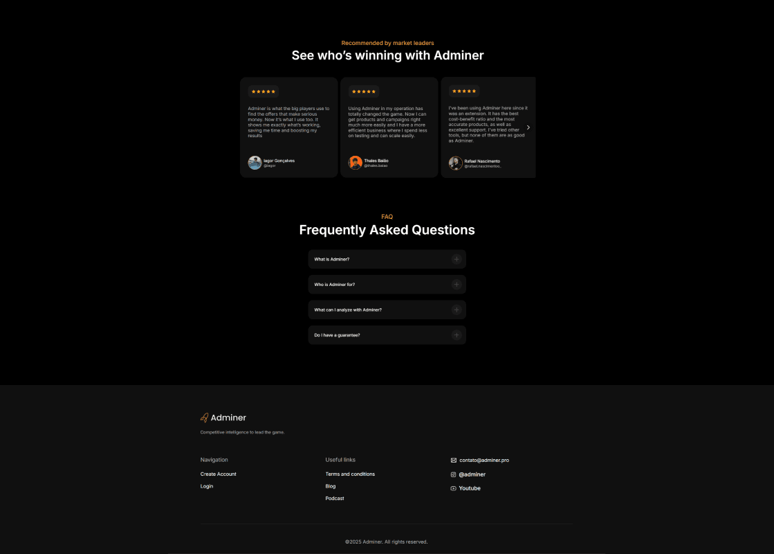 I was contracted to design and develop the new website for Adminer using Framer. The company previously had a website built on Webflow, but the project was assigned to me as a solo task. Given the limited time scope, a template was selected as the foundation, but it was fully customized, including the creation of unique design elements and a tailored user experience.
