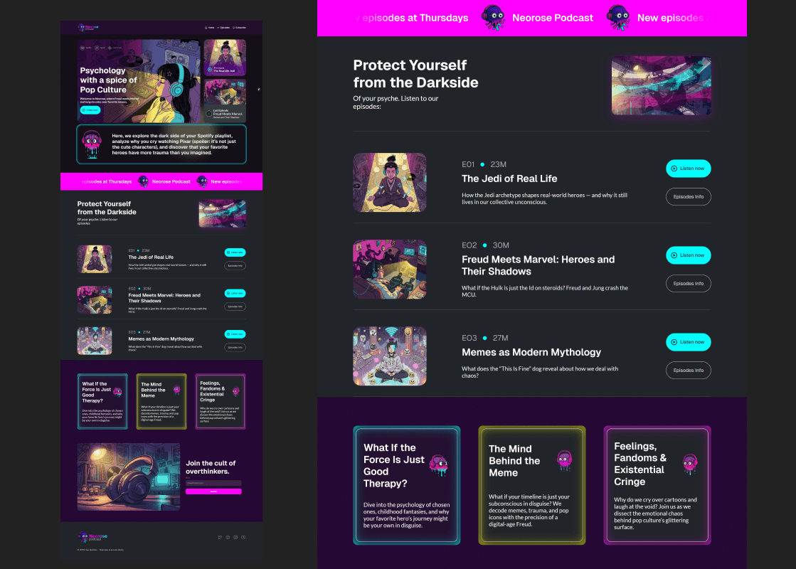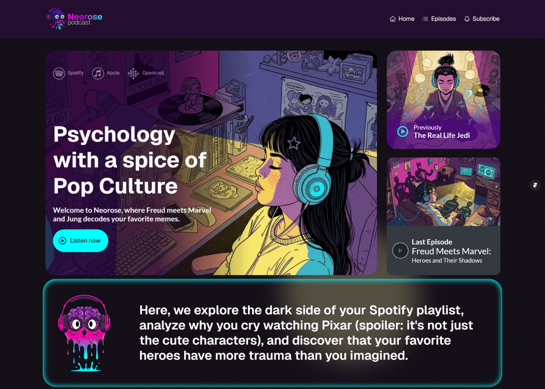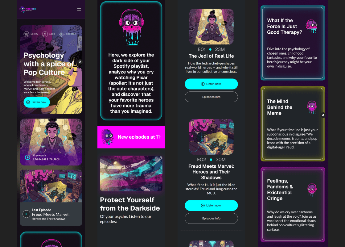 Podcast branding and experience design exploring the intersection of psychology and pop culture.